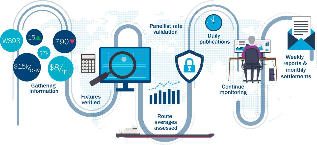 The routes or price assessments reported are as representative as possible of the world’s principal bulk cargo trades and reflect tradeflows in the physical markets.